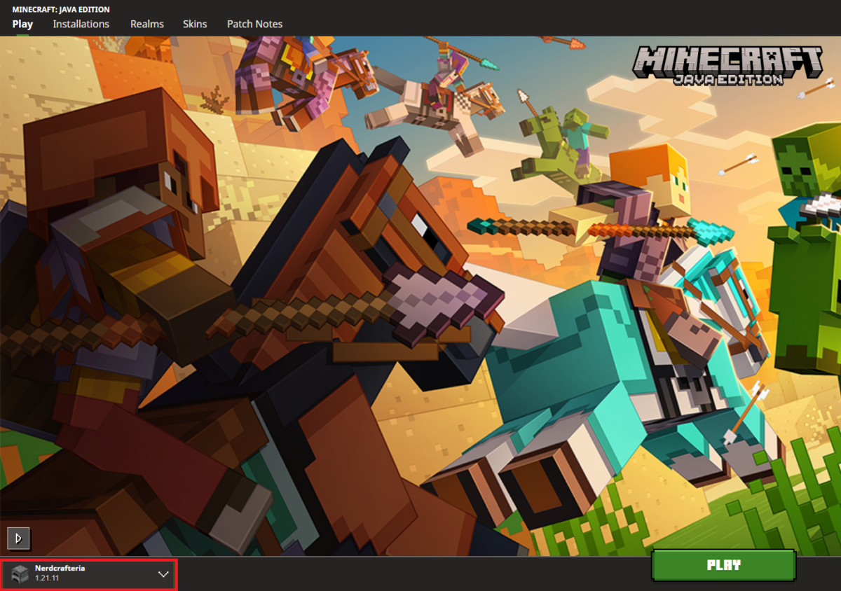 4. Return to the Play tab in the launcher. Use the drop down menu to the left of the play button to select your created installation. You are now ready to join us on Nerdcrafteria!